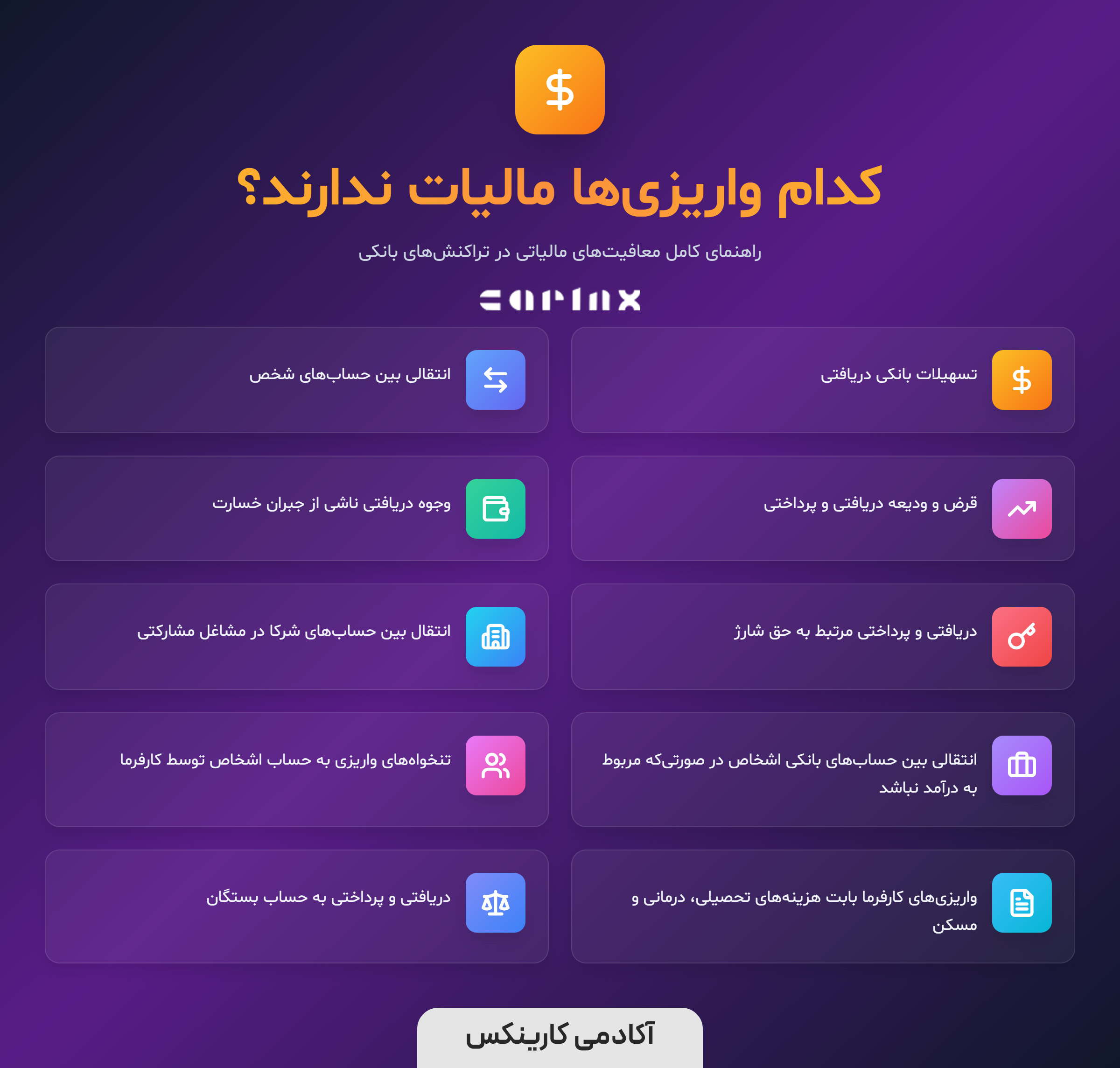 فهرست واریزی ها و تراکنش های بانکی که مالیات ندارند!